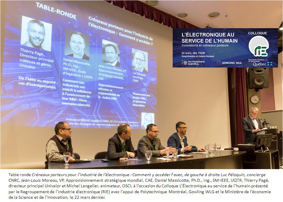 Le 22 mars 2017 se tenait à Polytechnique Montréal le 6e colloque du Regroupement de l’industrie de l’électronique (RIE) sur la thématique L’électronique au service de l’humain.